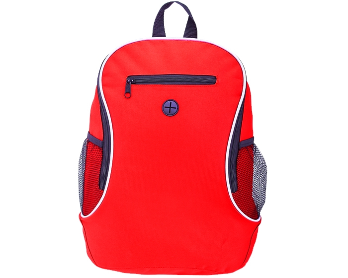 Mochila tipo backpack con salida para audífonos y bolsa de malla para guardar el celular. Con tirantes acolchados, correas ajustables, asa superior y bolsas de malla laterales para llevar el cilindro.