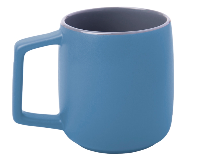 Taza acabado mate en el exterior, interior color gris con asa cuadrada. CAP. 415 ml. (14 OZ).