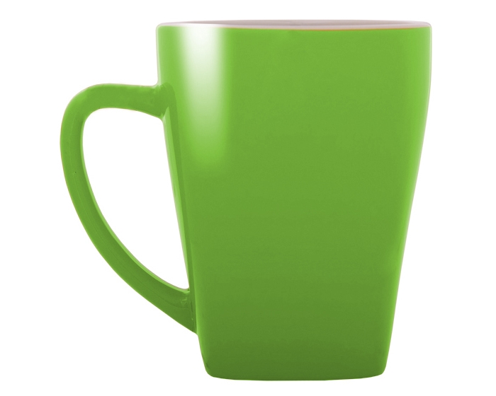 Taza con base cuadrada y borde superior redondo, interior blanco. CAP. 355 ml. (12 OZ). Venta en múltiplos de 12.