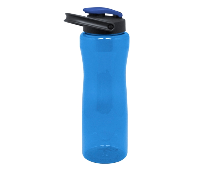 Cilindro de plástico PET libre de BPA, con tapa de rosca con asa para sujetar fácilmente y tapa abatible para beber sin derramar. CAP. 900 ml.