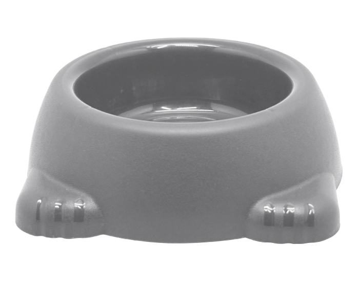 Recipiente de alimentos para mascotas, con detalle de patitas y gomas antideslizantes en la base. Cuenta con un orificio de fácil agarre. Cap. 950 ml.