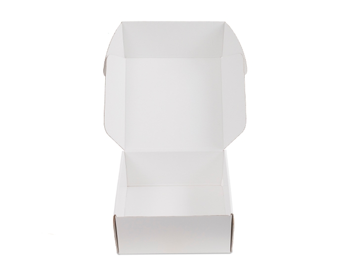 Caja de cartón blanco mate, ideal para regalos y kits promocionales. Se entrega desarmada. Venta en múltiplos de 10.