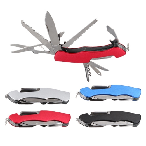 Navaja metálica multiusos con 9 funciones: Sierra, destapador, abrelatas, tijeras, serrucho, navaja, sacacorcho, lima y desarmador