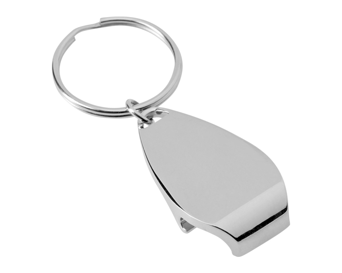 Llavero metálico destapador, con arillo metálico reforzado. Se imprime o graba por el frente.