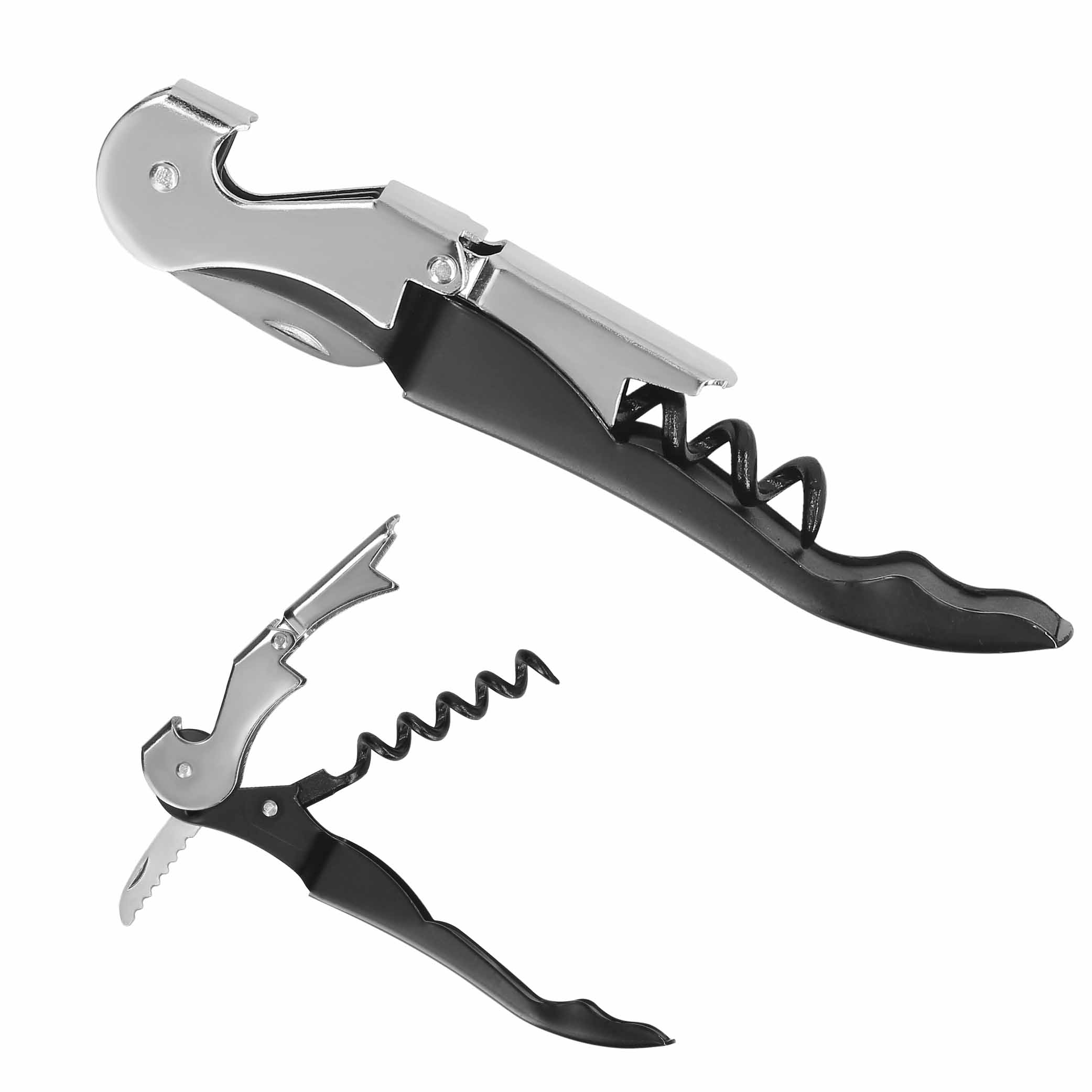 Sacacorchos de dos pasos de acero inoxidable con navaja y destapador